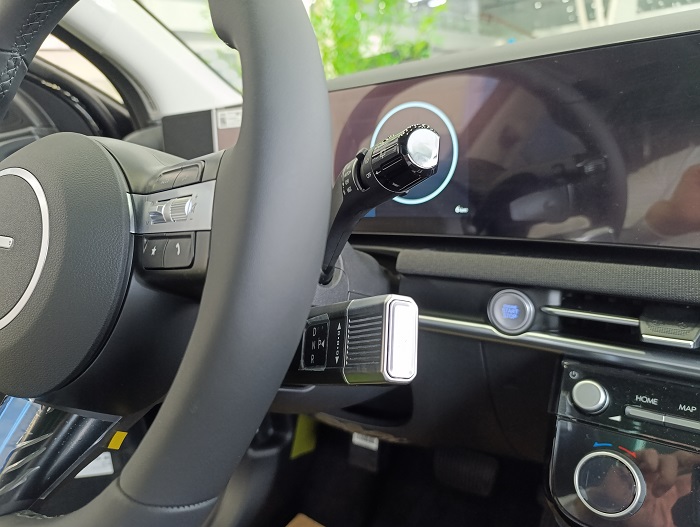 Cụm điều khiển điều hòa trên xe dạng cảm ứng được nối liền cùng màn hình trung tâm đặt ngay bên dưới vô cùng gọn gàng và tiện lợi. Ngoài ra, cần số dạng nút bấm được trang bị trên phiên bản dầu Đặc biệt và xăng Turbo.